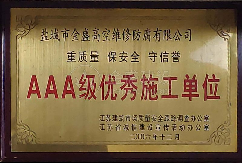 • 2007年江蘇省質量信得過安全穩定施工企業